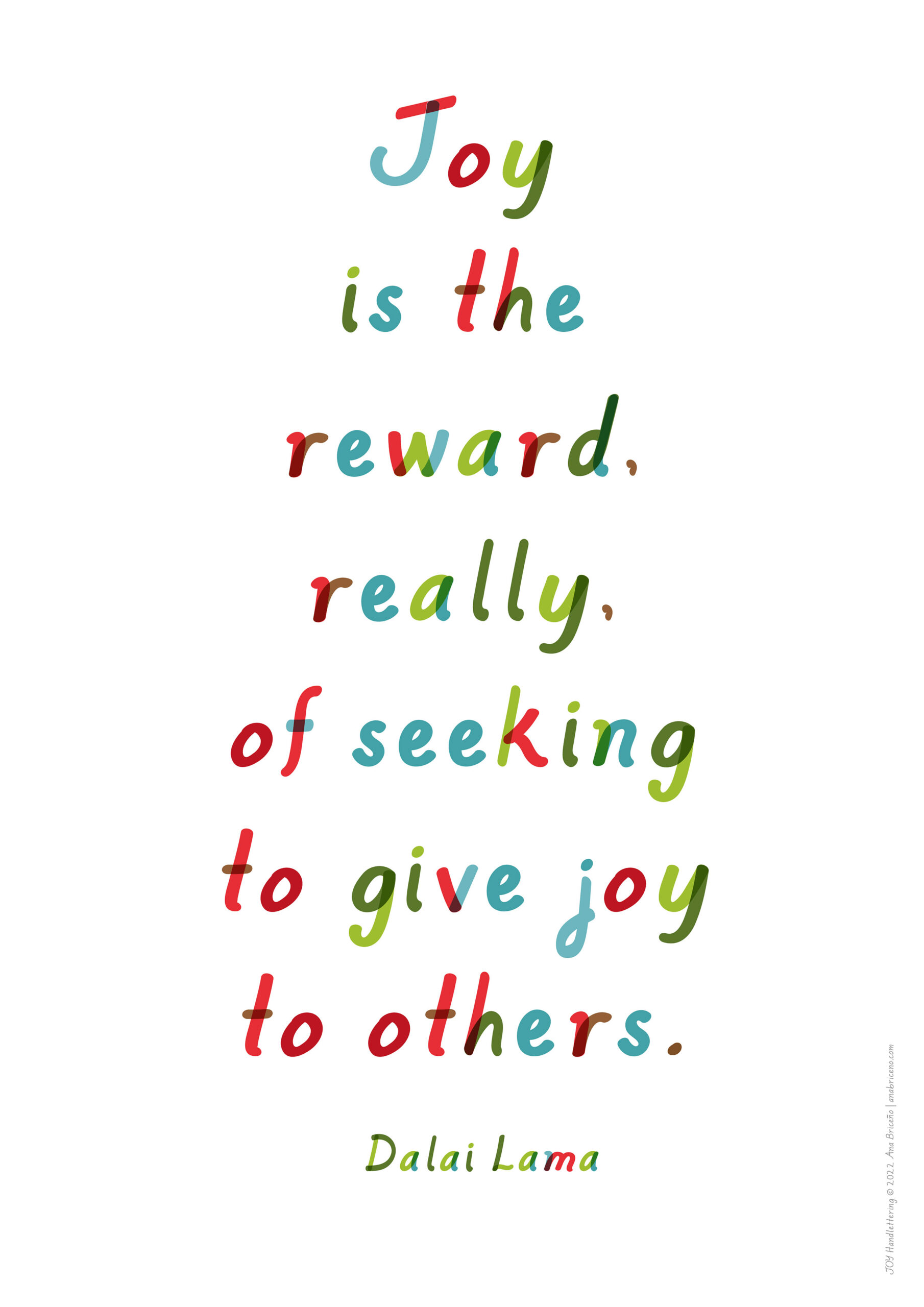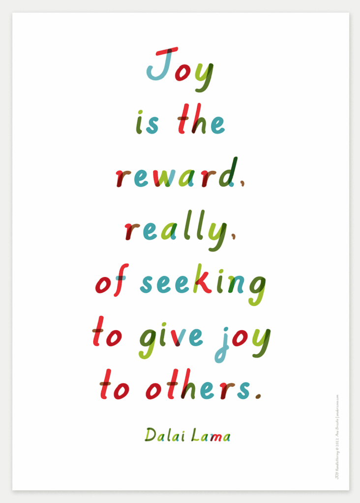 This quote by the Dalai Lama reminds us that true happiness comes from bringing joy to others. The design uses the unique font “JOY” created by Ana Briceño.